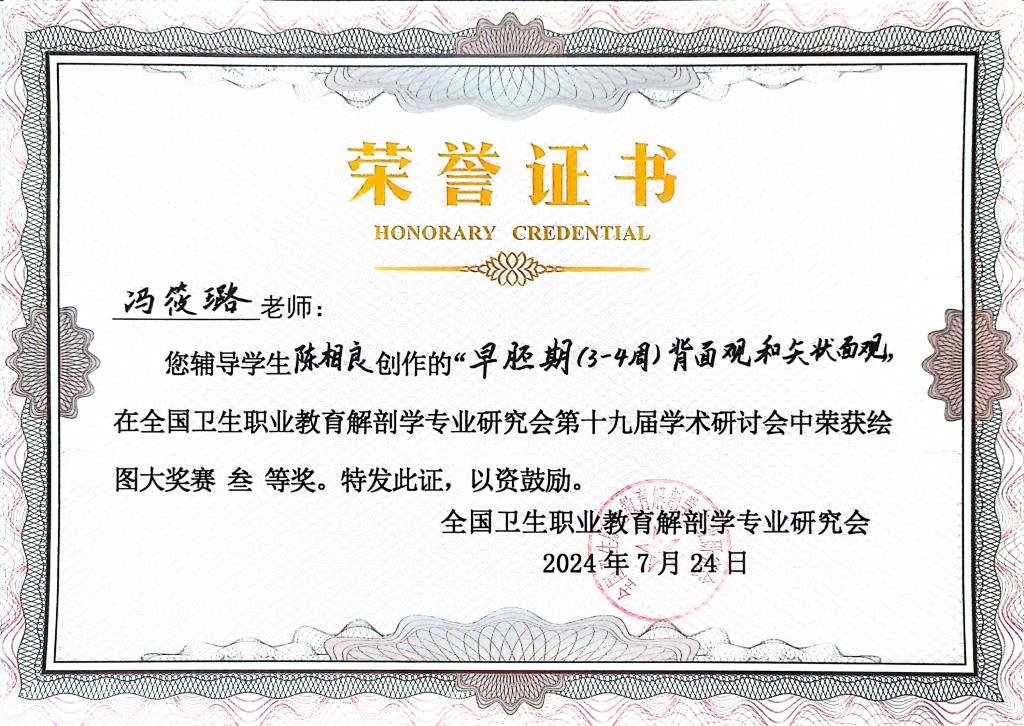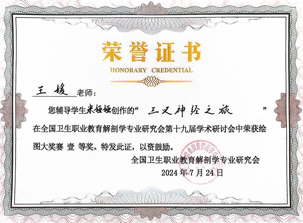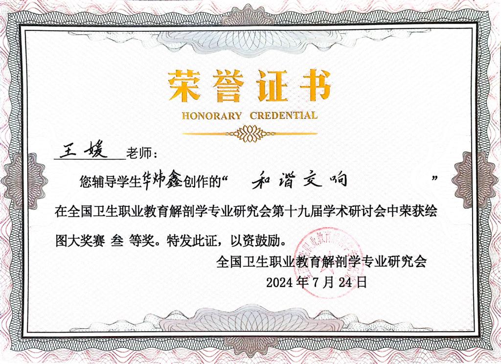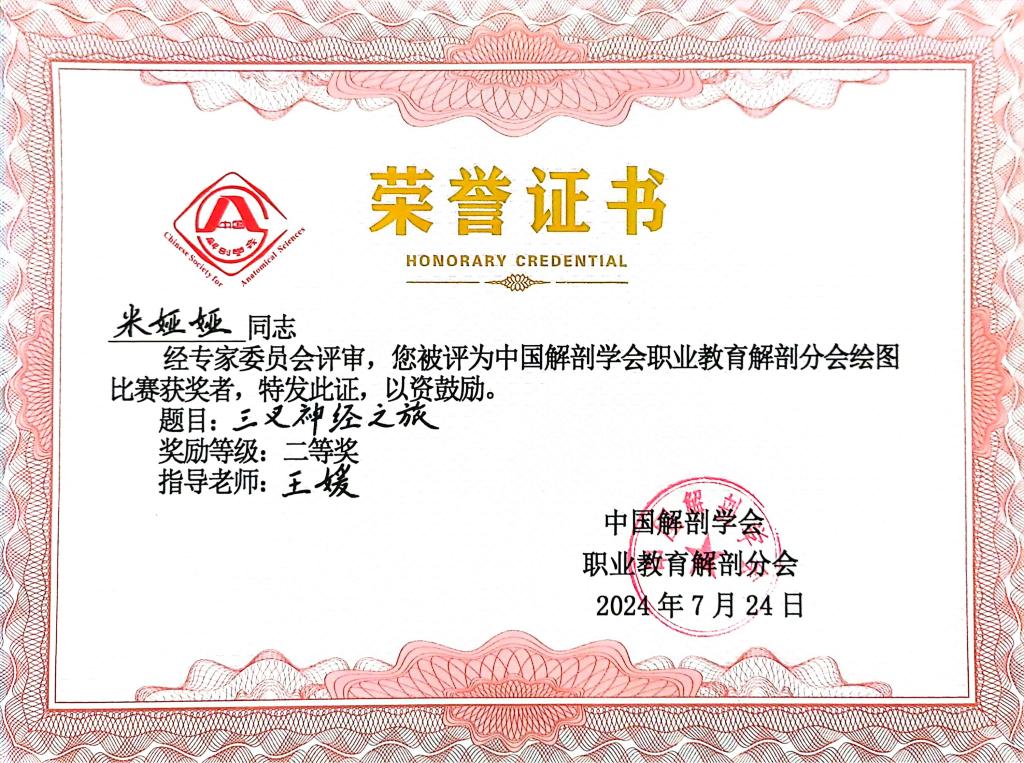 中国解剖学会职业教育解剖分会致力于推动解剖学教学和研究的发展,每年举办的全国解剖学会议是该领域内的一大盛事。此次会议自7月22日起至26日在贵州省都匀市召开,吸引了全国各地的解剖学专家和学者前来参与。解剖学绘图大赛作为会议的一大亮点,旨在通过绘画的形式展现解剖学的奥秘,同时也考察参赛者对人体结构的认知程度和艺术表达能力。在为期五天的会议中,公司威廉希尔williamhill副经理何敏和教师冯筱璐作为代表,带领校赛中选拔的5幅作品参加此次大赛。其中四名同学凭借其精湛的绘图技巧和对解剖学的深刻理解,在激烈的竞争中脱颖而出,赢得了评委和观众的一致好评。他们的获奖作品不仅准确展现了人体结构的复杂性,更以其独特的艺术表现力,将科学与美学完美结合。
