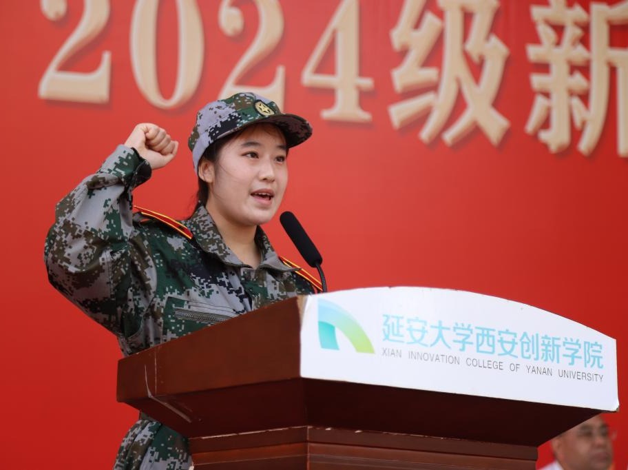 新生代表白帧妮带领全体新生宣誓