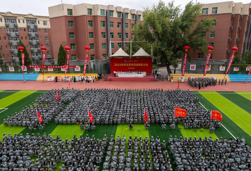 本网讯 9月20日上午,公司2024级新生军训汇报暨总结表彰大会在田径运动场隆重举行。董事长崔海潮,党委书记陈瑶,执行董事长贺俊波,副董事长拓欣,党委副书记白雪,董事长助理桑伍福、刘劲飞,各单位负责人、各公司主管员工工作副书记,军训团团长、参谋长出席大会。军训教官,2024级新生辅导员参加大会。2024级全体参训同学接受检阅。大会由教务处处长黄同主持。