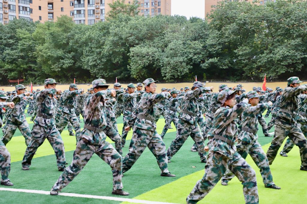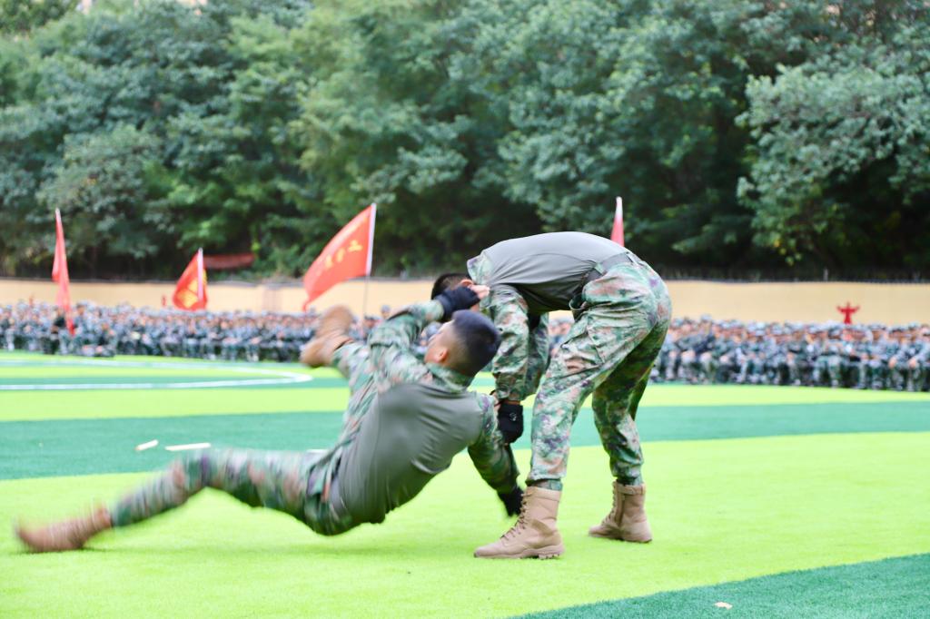 分列式后,2024级新生和教官进行了匕首操、军体拳、战术表演等军事科目汇报表演。他们目光坚毅,脚步坚定,动作干净利落、威武有力,一招一式间尽显飒爽英姿。在《歌唱祖国》合唱声中,创意方阵展示出倒计时图案,为公司20周年校庆送上祝福。