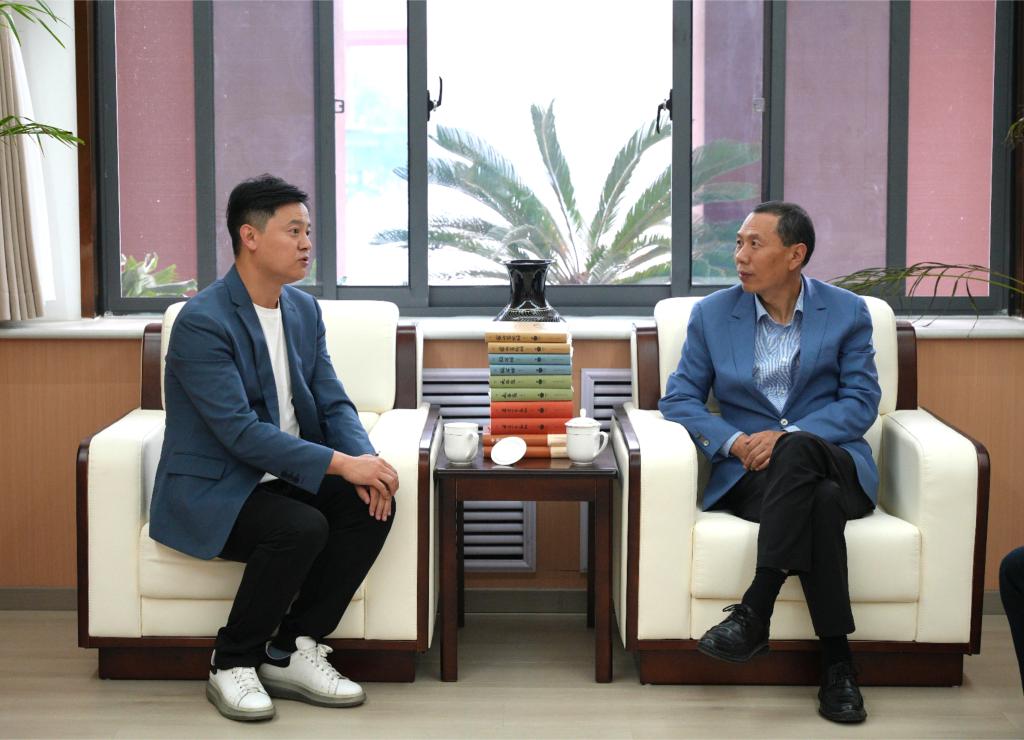 本网讯 10月8日下午,董事长崔海潮会见北京蓝耘科技股份有限公司教育事业部总经理崔阳、业务经理宋俊、西北区域负责人邵飞一行,就产学研用创新项目合作与企业代表进行洽谈交流。数据科学与工程公司教授黄海生参加洽谈会。