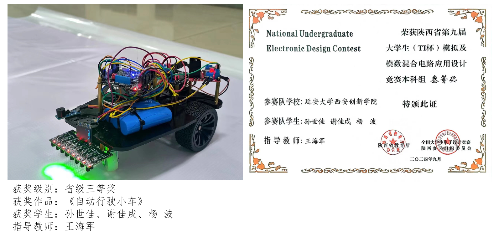 15.陕西省第九届模拟及模数混合电路应用设计竞赛荣获省级三等奖1项。