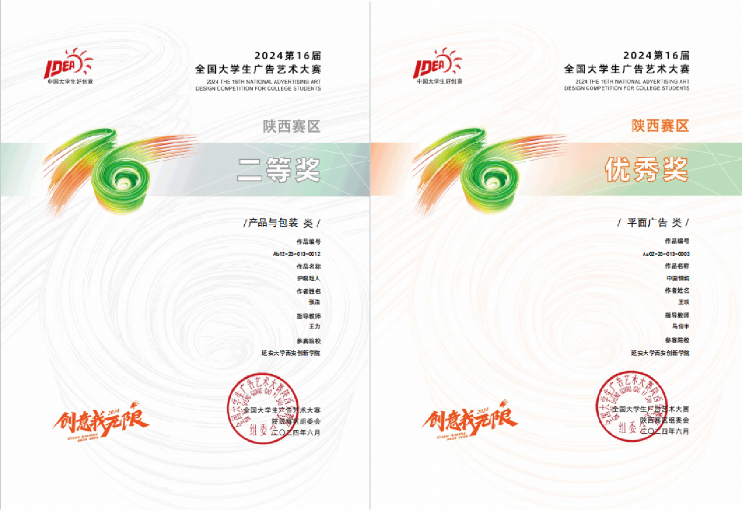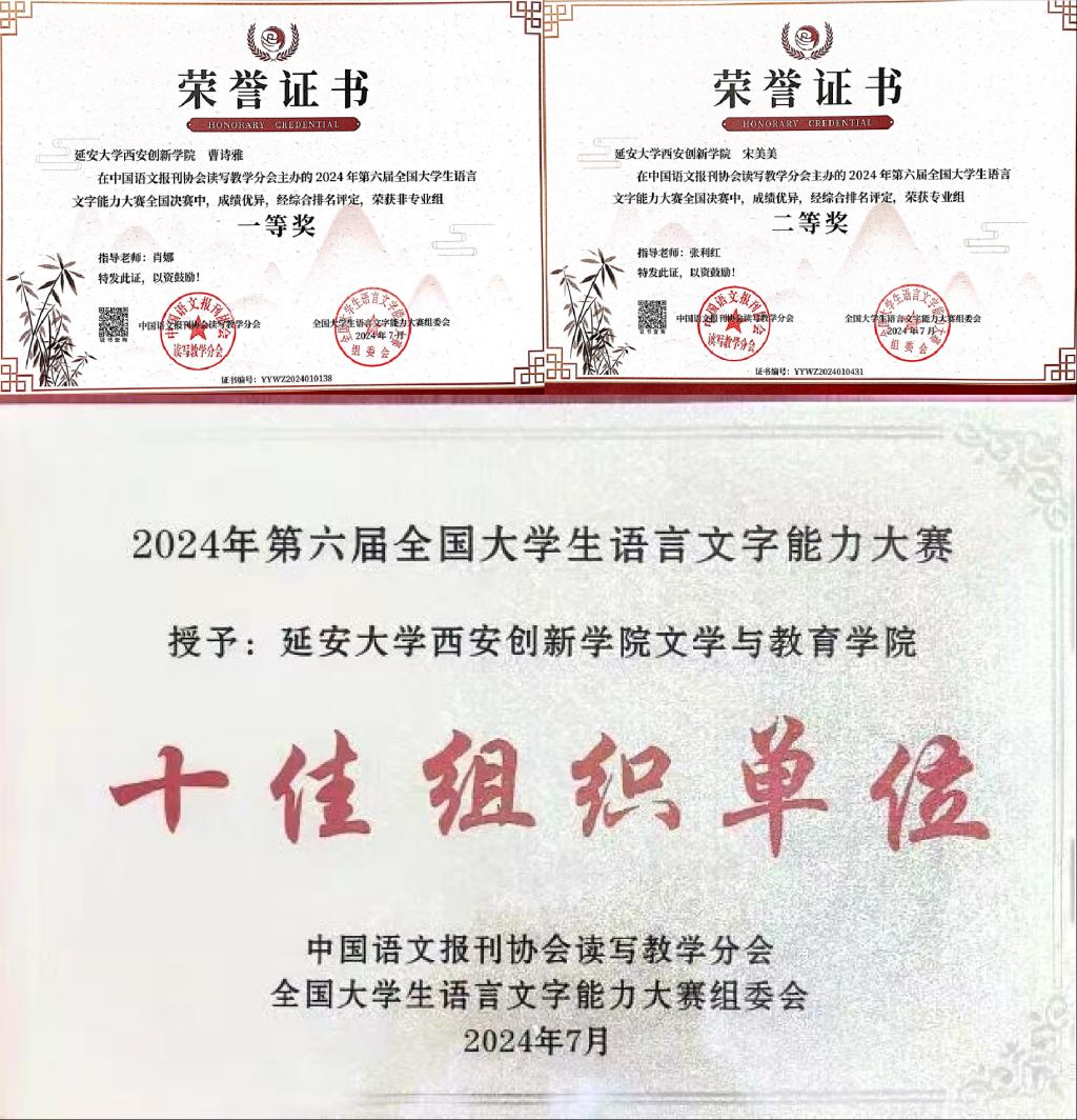 部分获奖证书及作品展示