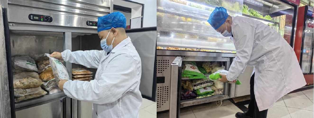 在蔬菜、水果区域,检查人员逐一检查水果的成熟度、有无腐烂变质迹象,蔬菜的新鲜程度、是否有黄叶或虫蛀现象。他们还对蔬菜水果的存储环境进行评估,确保存储条件符合要求,以延长其保鲜期。