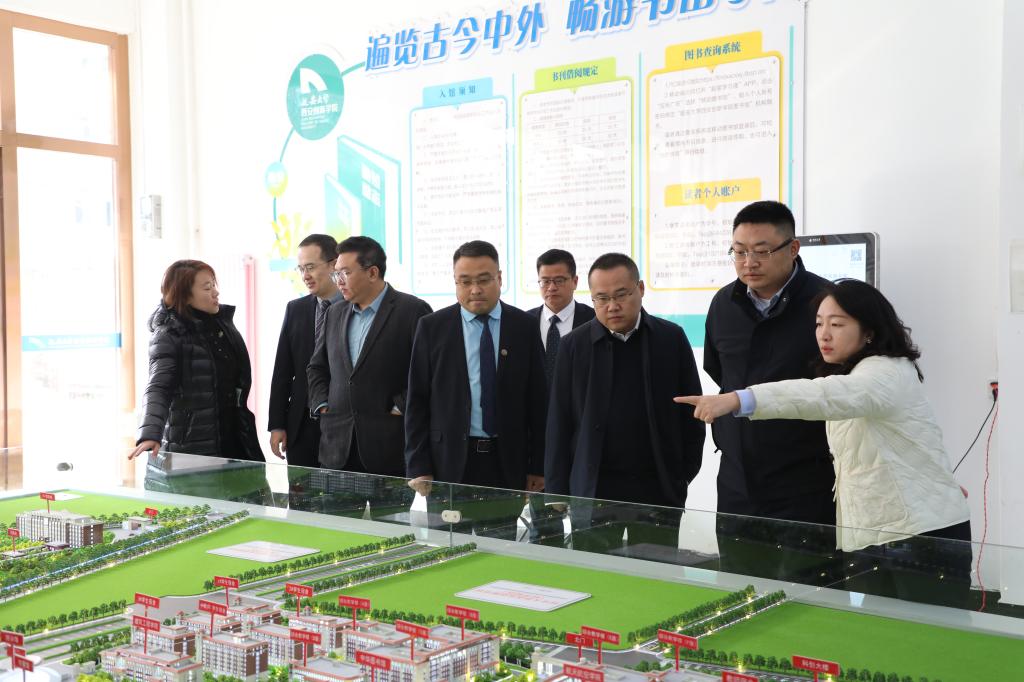 座谈会后,栾天一行在贺俊波等人的陪同下实地参观了公司图书馆、教学楼、宿舍生活区及高建群研究中心等地。