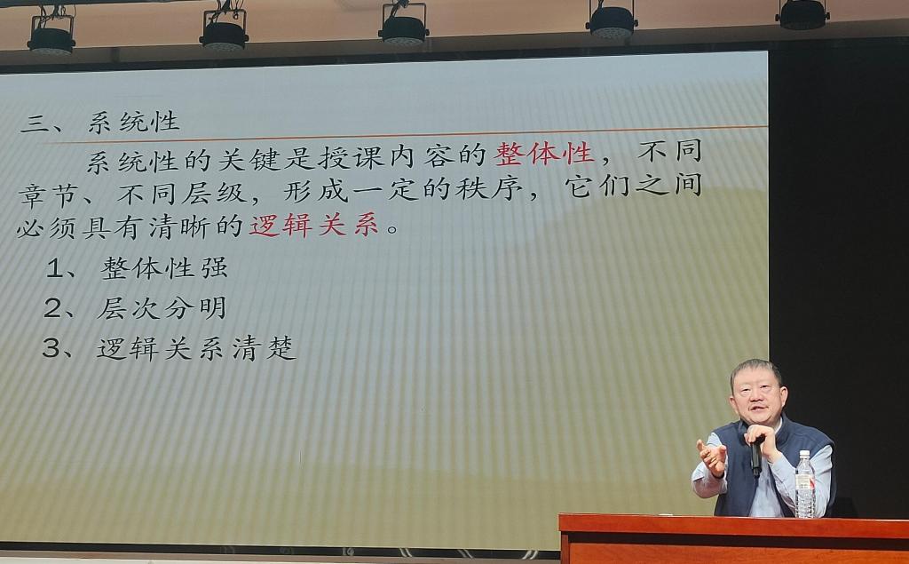 文学与文化传播公司专职教师高天成教授以“青年教师教学能力提升漫谈”为主题,指出高校教育不能满足于跟风社会潮流,而是应该做社会的引领者。他引用实际案例阐述了课堂教学的神圣性、知识性、系统性、适用性、学术性与灵活性。