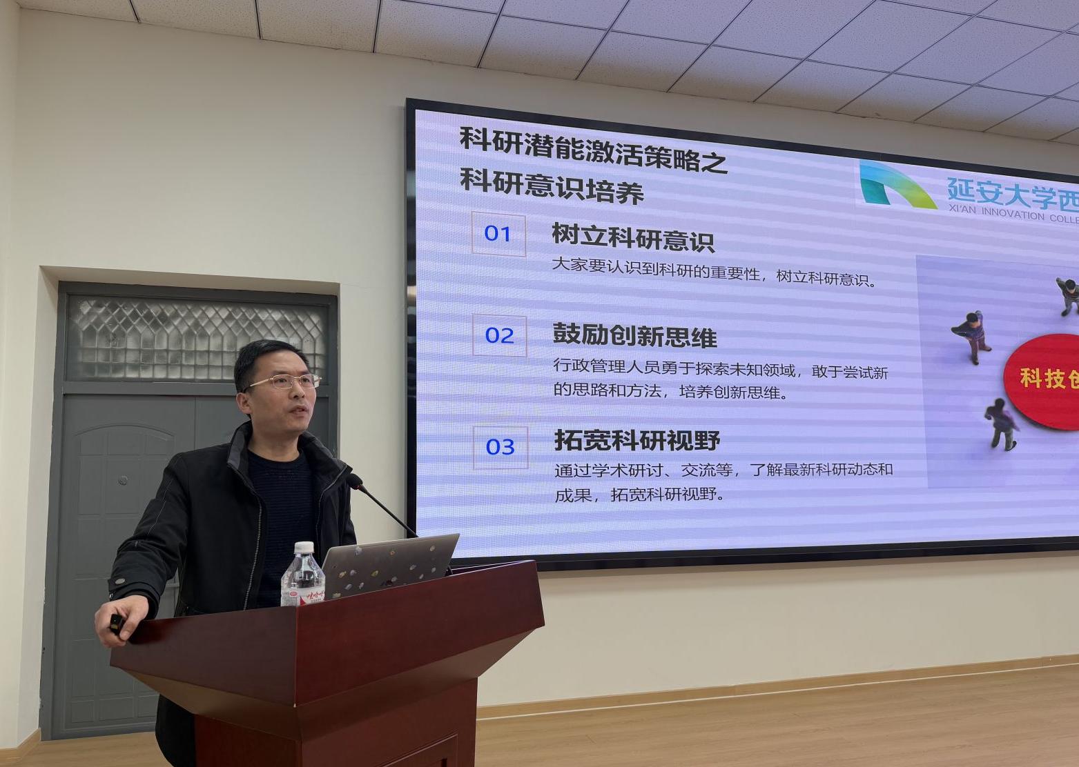 科研处负责人王海军从强化科研能力的必要性、科研能力对行政管理的助力、实施路径等方面入手,强调管理人员要勇于面对新挑战,不能仅满足于日常事务处理,必须挖掘科研潜能,重塑竞争力,为公司发展注入新动力。