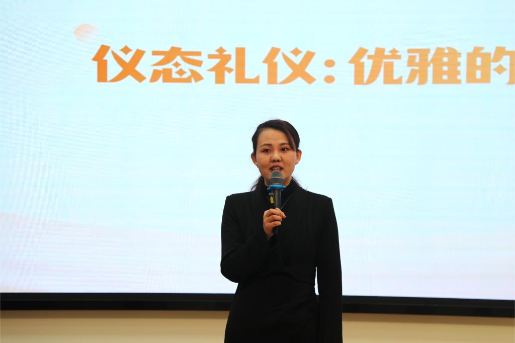 “言礼同行”培训机构创始人文丽媛以“聚焦礼仪实践,深化沟通艺术”为主题开展讲座。通过展示形象礼仪、演示接待程序、讲解沟通之道,对公司行政人员服务能力进行进阶培训。