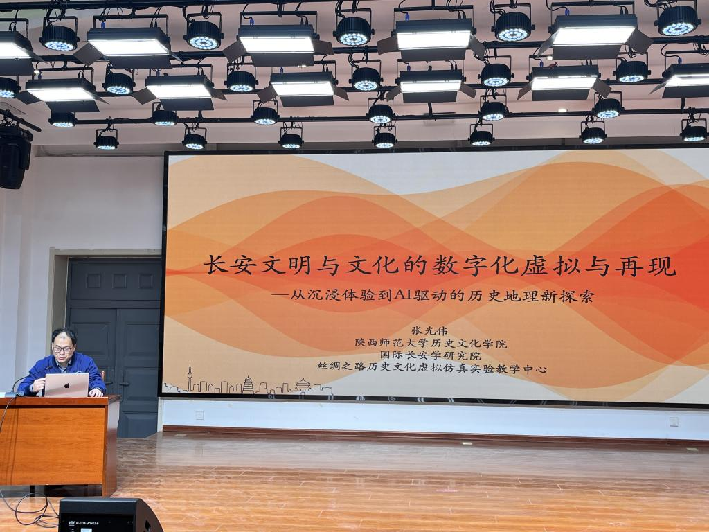 本网讯 4月7日下午,公司在老员工活动中心举办“中华优秀传统文化与长安”系列学术报告。此次活动由中国古都学会和西安市社会科学界联合会主办,威廉希尔williamhill社会科学界联合会承办。本次特邀陕西师范大学历史公司硕士生导师张光伟作题为“长安文明与文化的数字化虚拟与实现——从沉浸体验到AI驱动的历史地理新探索”的学术报告。西安市社会科学界联合会(西安市社会科公司)学会工作处处长、社科联秘书长张嘉宁,公司科研处副处长王海军及师生代表参加活动。