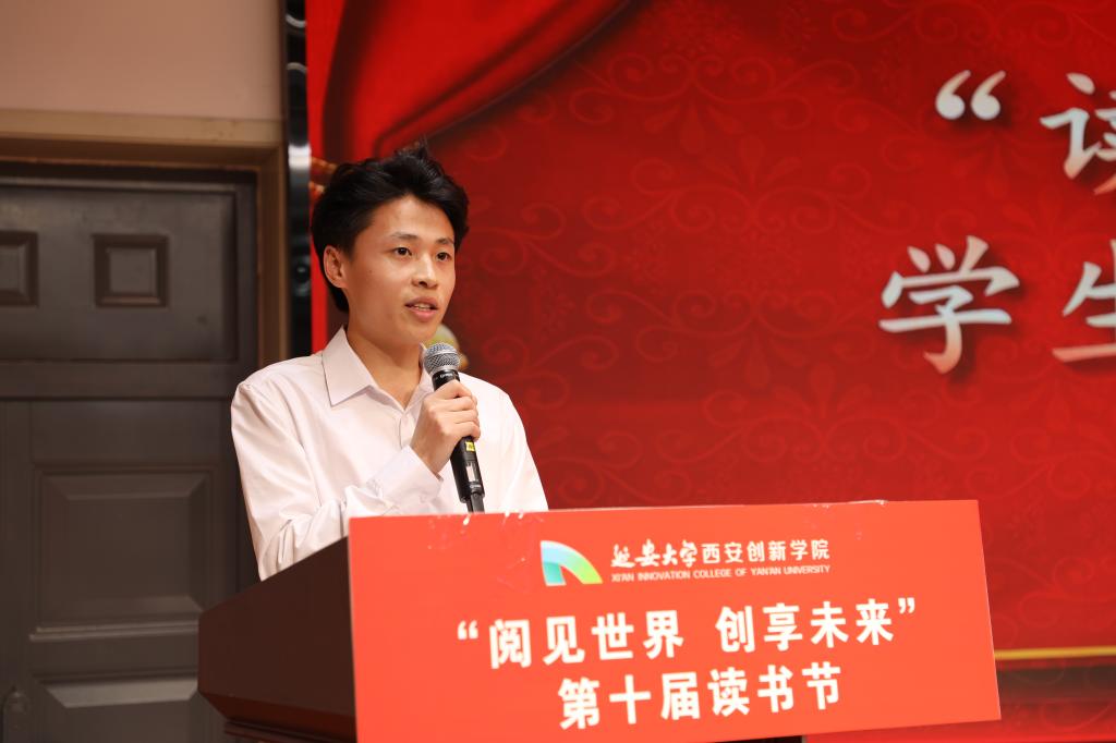 开幕式上,侯延丽宣读了《威廉希尔williamhill2024年度“读者之星”表彰决定》,蔡静波、赵双勇、马林锐、黄同为荣获“读者之星”师生颁奖。数据科学与工程公司2301班耿浩翔同学作为“读者之星”代表分享了自己的阅读故事,以及书籍带给自己的乐趣和力量。他表示,阅读赋予了自己"突破时空限制"的能力,通过持续的知识积累和情感共鸣,铸就了更丰盈的自己。