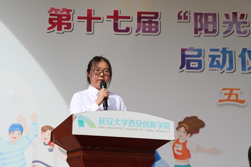 随后,张亮宣读了《关于开展第十七届“阳光护航”心理育人宣传季实践活动的通知》。员工代表汉语2304班马思瑜在发言中解读了朋辈互助对青年成长的积极作用。文学与文化传播公司党总支副书记楚玥在发言中表示,二级公司将结合专业特色,不断创新,持续开展“一院一品”心理育人品牌活动。最后,心理健康教育与咨询中心副主任王璐璐带领全体师生进行“善爱我”誓词宣誓。