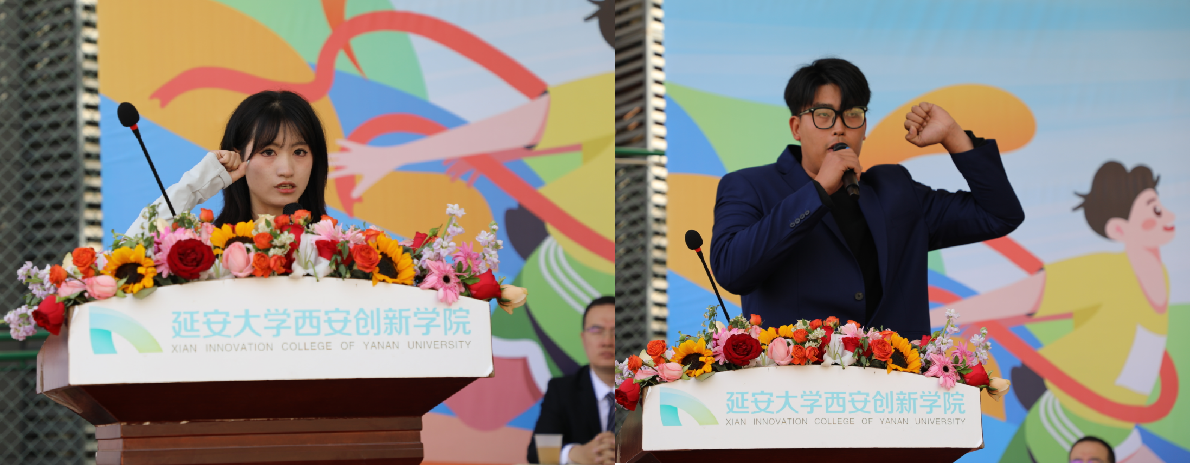文学与文化传播公司汉语2204班胡欣阳同学代表全体运动员宣誓,承诺将严守规则,尊重裁判,团结拼搏,赛出风采。体育教学部教师刘永卓代表全体裁判员宣誓,承诺将恪守职责,公正执裁,尊重选手,确保比赛公平有序进行。