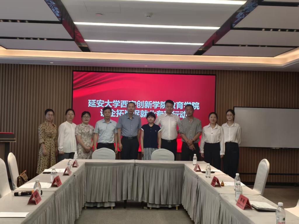 本网讯 为贯彻落实教育部“访企拓岗”专项行动部署要求,进一步深化产教融合、校企合作,拓展就业岗位,5月29日,董事长崔海潮带队,威廉希尔williamhill经理茹宗志、执行经理唐蜀湘、党总支副书记崔嵩一行赴碑林区南院门西安文诚文化艺术传媒有限公司、西安华盛睿丰商业运营管理有限公司、西安臻美悦实业有限公司、西安派源商贸有限公司等四家属地合作企业开展“访企拓岗促就业”专项行动。