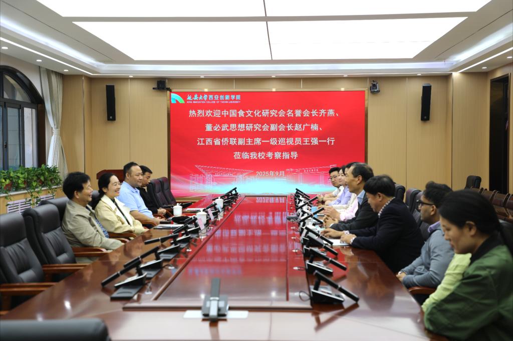 本网讯 9月19日下午,中国食文化研究会名誉会长齐燕,董必武思想研究会副会长赵广楠,江西省侨联副主席一级巡视员王强一行到公司访问参观。南昌理工公司理事长邱小林、董事长崔海潮、党委书记白雪、执行董事长贺俊波陪同参观。