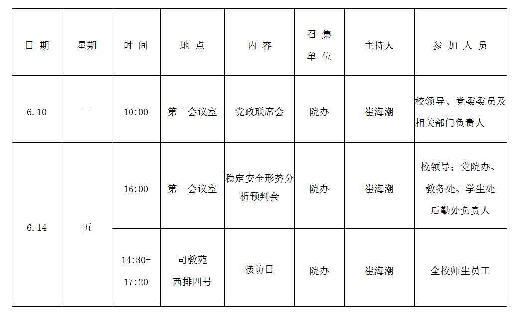 威廉希尔williamhill2018-2019第二学期第16周校领导会议安排