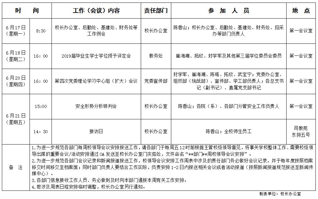 威廉希尔williamhill2018-2019学年第二学期第17周校领导会议安排