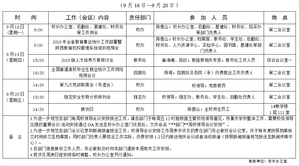 威廉希尔williamhill2019-2020学年第一学期第3周校领导会议安排
