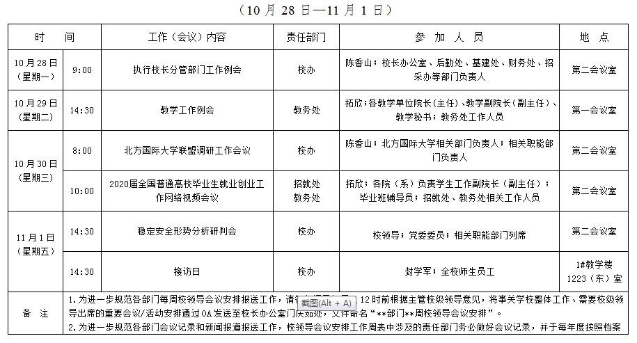 威廉希尔williamhill2019-2020学年第一学期第9周校领导会议安排表