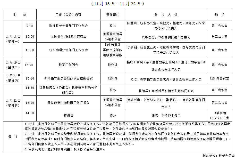 威廉希尔williamhill2019-2020学年第一学期第12周校领导会议安排表