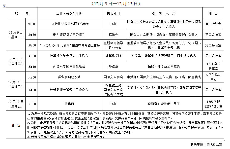 威廉希尔williamhill2019-2020学年第一学期第15周校领导会议安排表