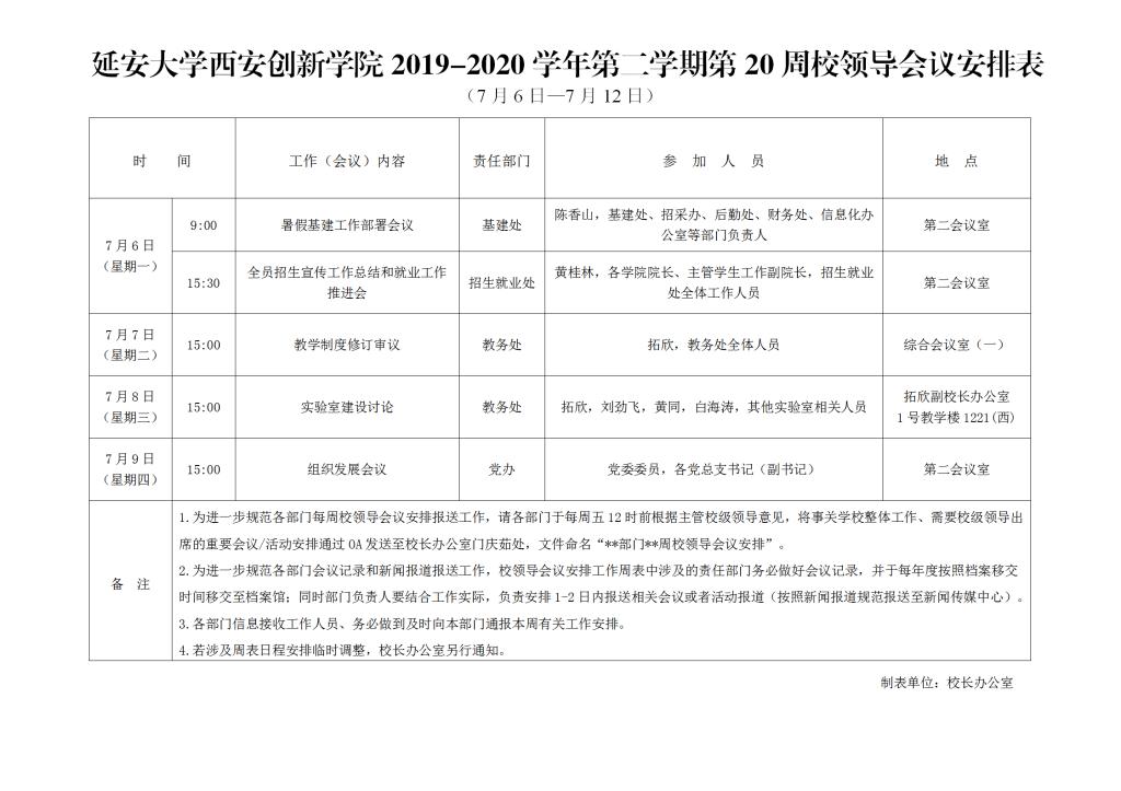 威廉希尔williamhill2019-2020学年第二学期第20周校领导会议安排表
