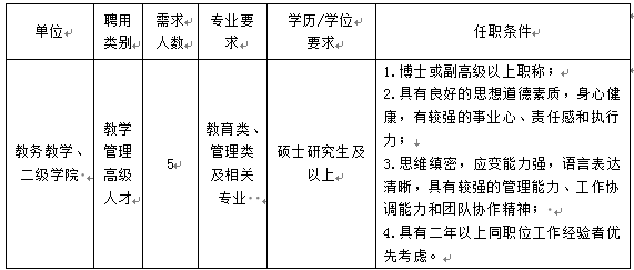 高层次人才、高级管理人才和博士应聘不受时间限制,常年有效。