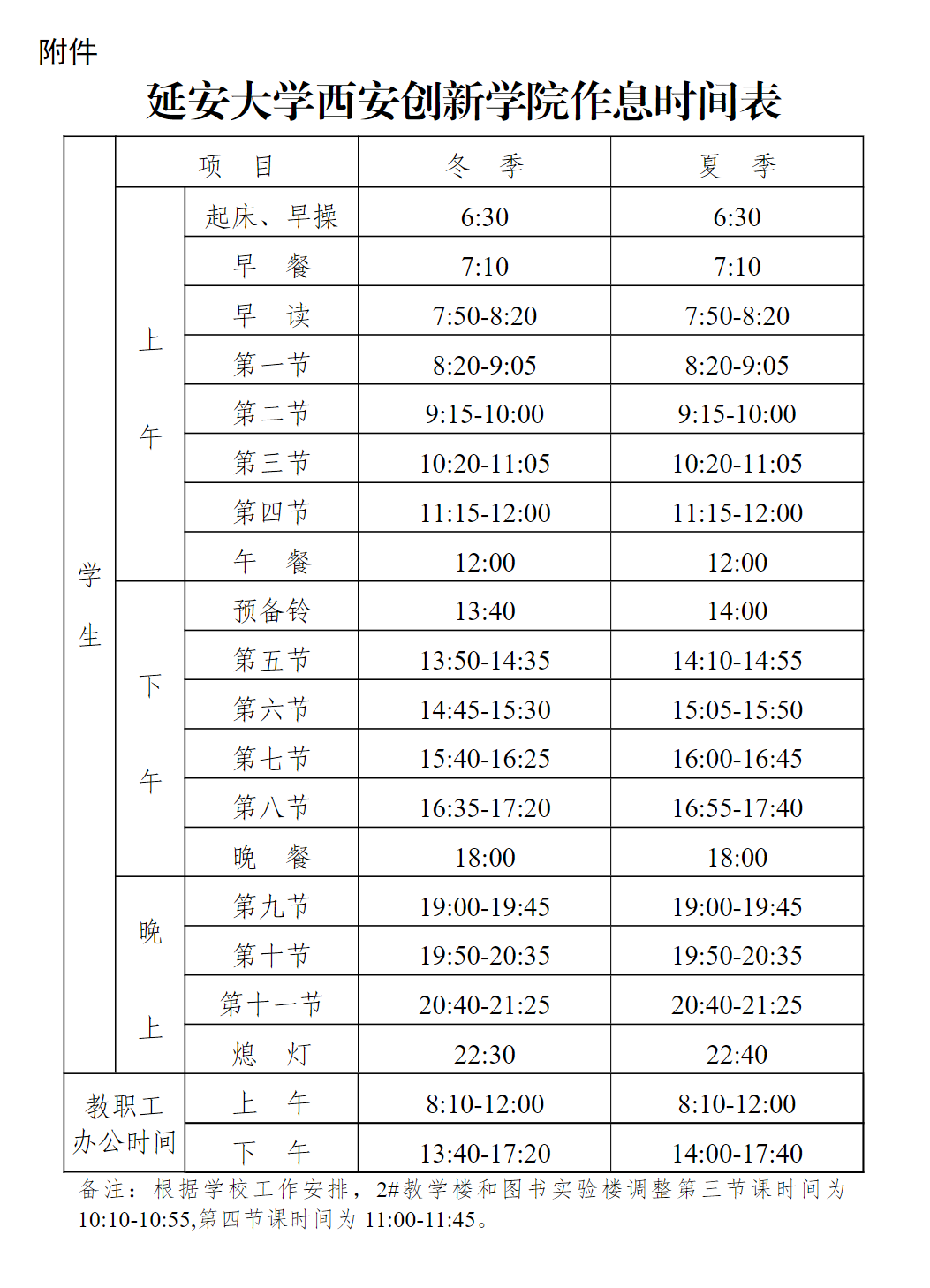 3.自10月9日起开始执行冬季作息时间(见附件),通勤班车下午送教职工车辆发车时间调整为17:30,请各单位及时通知乘车教职工。