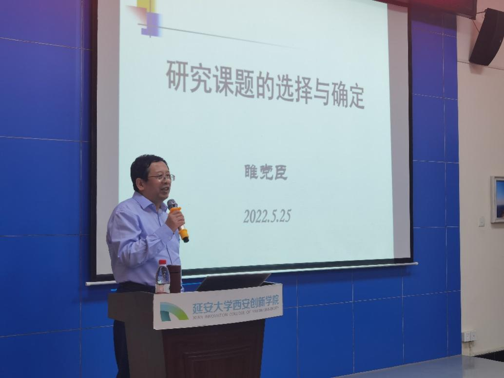 报告会上,睢党臣教授结合自身的实践经验和研究成果,理论联系实际,他深刻阐述了选题的意义,激励大家要有发现问题的强烈意识,并结合大量实例讲述了选题的标准,从理论和实践意义等多角度阐述了选题的重要性、创造性和可行性,倡导在场教师要“寻找突破口,有所思,有所想”;睢教授分别从社会发展、日常生活、学科转型等七个方面阐述了选题的来源,拓宽了教师们以往固定的思维方式;睢党臣教授强调了选题的五点基本要求,他提醒在座教师要紧跟时代步伐,注重选题的理论和应用价值,提出的问题要新颖,有独创性,充分发挥个人的优势特长。