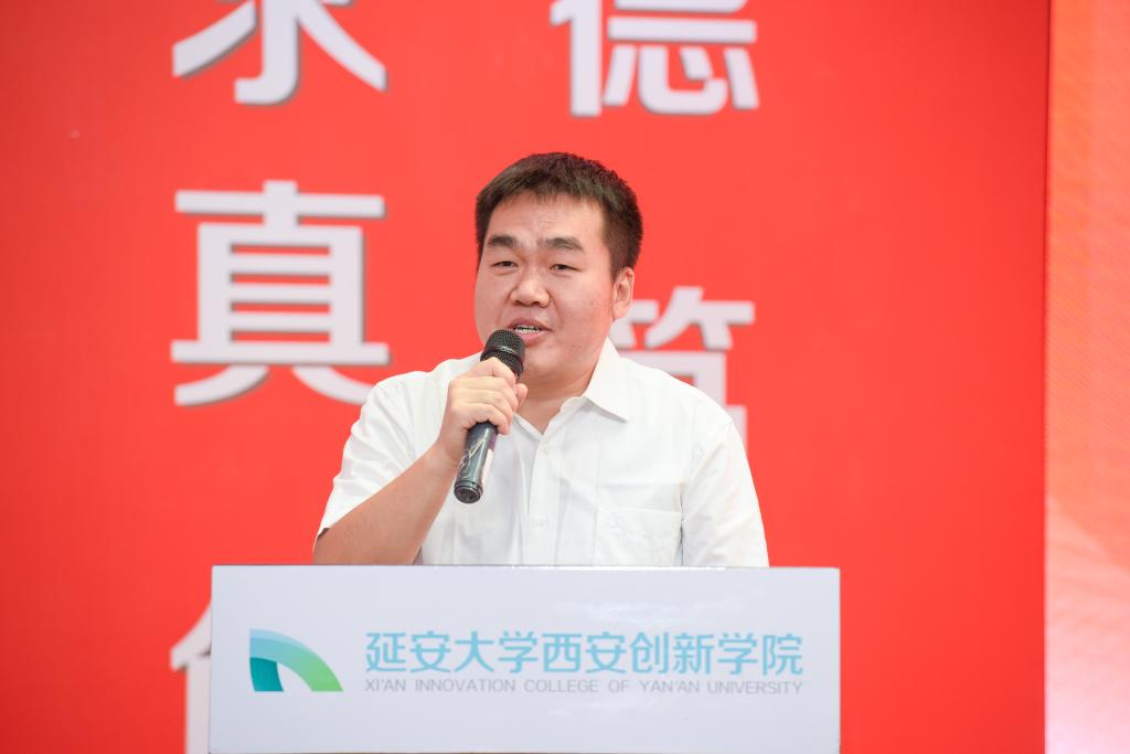 老生代表曹怡华回忆了高考的奋斗经历和对创新的初印象,讲述了自己在创新公司的亲身经历,她建议新生要坚守本心,兼怀天下,但行前路,无问西东。