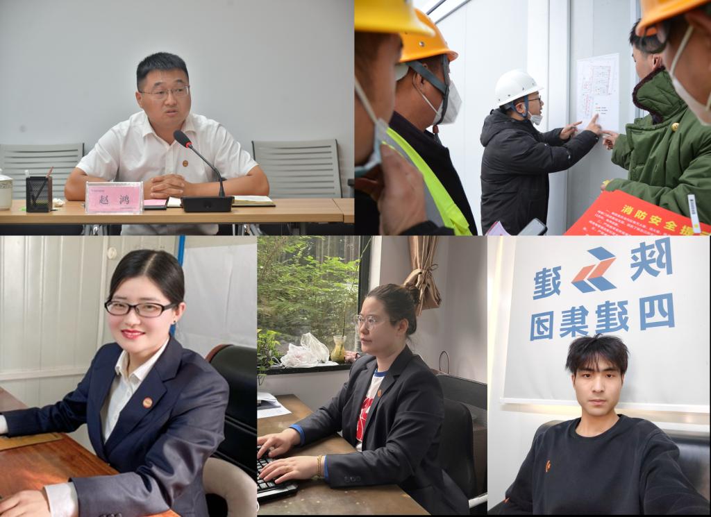 (从左至右依次是陕建四建集团第五工程公司总工程师赵鸿、总部技术中心副经理潘金旭、总部技术中心干事姚宝、总部质量部干事徐樱、三分司技术员郝幸)