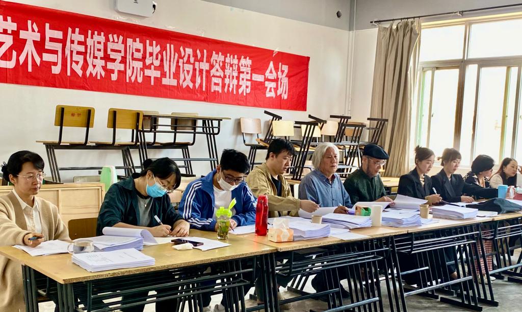 本网讯 艺术与传媒公司2023届本科毕业论文(设计)答辩于5月13-17日进行。本次答辩涉及公司美术学、视觉传达设计、环境设计三个专业,共计123名毕业生参加,分为两轮答辩。担任此次答辩的评委老师有艺术与传媒公司特聘教授王家民、徐步及美术学、视觉传达设计、环境设计专业等二十余位专职教师。