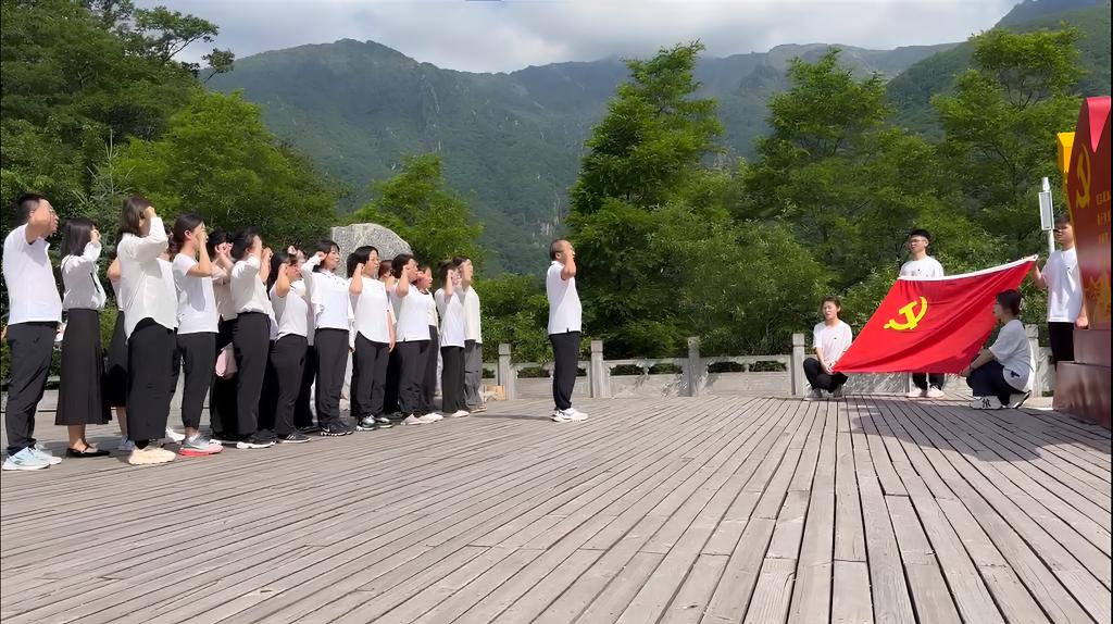 全体党员追随习近平总书记的足迹,来到月亮垭,护理与健康公司党总支书记侯延丽为全体党员上了一堂主题为《心怀国之大者,主动担当作为》的精彩微党课,重温了习近平总书记关于秦岭生态保护的重要指示和殷殷嘱托,提醒大家要始终牢记“国之大者”,深刻汲取秦岭违建事件教训。教工党支部书记白亚军带领所有党员面向党旗、手握拳头,重温入党誓词。