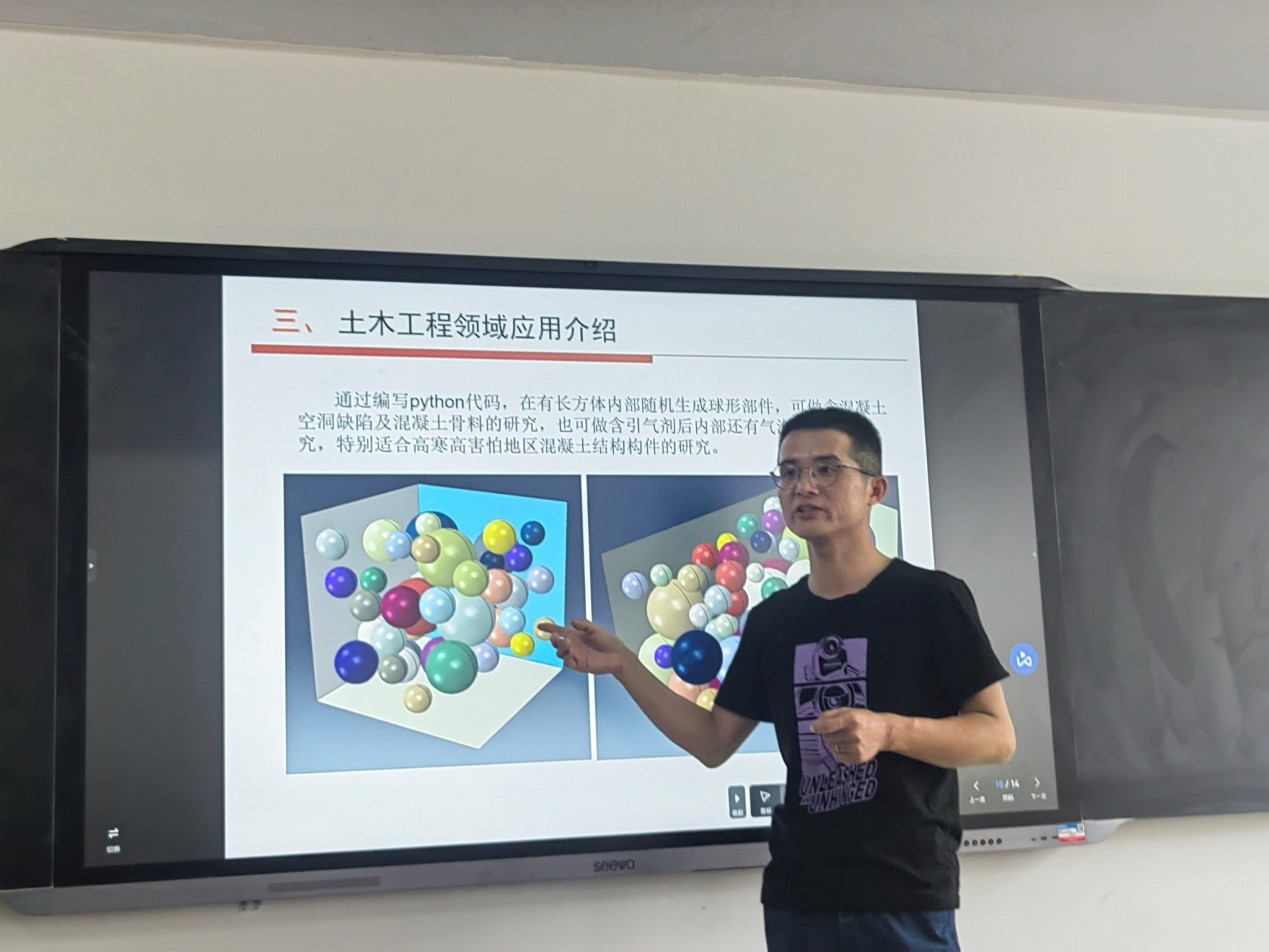 刘晓伟以《Python二次开发背景下的abaqus仿真软件在土木工程领域的应用研究》为题,讲解了Python语言在abaqus软件中的应用以及在软件二次开发中的开发成果,同时对abaqus软件未来在土木工程领域中的应用和发展前景进行了阐述。