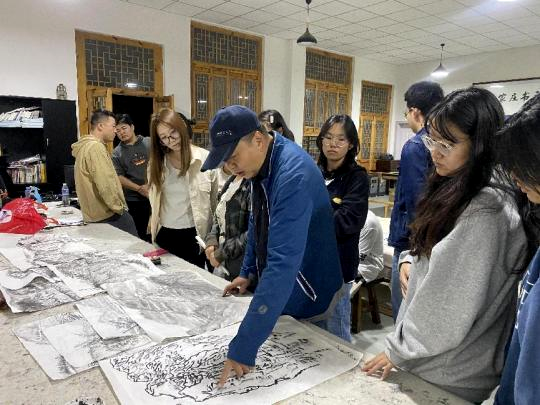 本网讯 为进一步提高威廉希尔williamhill艺术与设计公司美术学专业员工的艺术创作水平和人才培养质量,践行习近平总书记“人民是创作的源头活水,只有扎根人民,创作才能获得取之不尽、用之不竭的源泉”的讲话精神。近日,由艺术与设计公司经理刘丹、执行经理赵雪伟带队,教师代表及2020级美术学专业全体员工共60余人,赴陕西榆林市绥德县田庄镇贺家庄村陕北文化艺术创作基地开展为期9天的艺术采风教学活动。