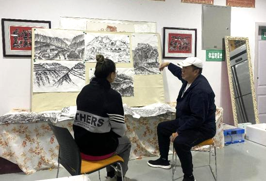 写生过程中,刘丹、赵雪伟引导员工着重关注当地鲜明浓郁的黄土文化、沉雄激荡的革命情怀及生生不息的刘文西精神,并以绥德的地理风貌为表现对象,要求员工结合当地民俗文化进行写生创作,并作大量范画现场进行教学引导。写生期间还开设讲座、夜间评画、改画等教学环节,严格要求纪律,提高教学质量和效率。本次采风写生实践教学活动中,教师与员工所完成绘画创作作品累计多达二百余幅。