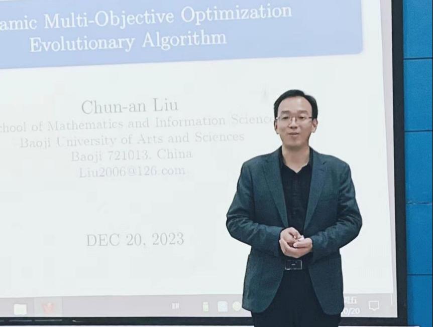 本网讯 为了帮助同学们更好地了解动态多目标优化进化算法的前沿动态,提高同学们的学术研究能力和考研竞争力,10月20日下午,数据科学与工程公司在樊川大讲堂举办“动态多目标优化进化算法”学术专题讲座暨考研宣讲会。本次讲座邀请了宝鸡文理公司数学与信息科学公司经理刘淳安教授作为主讲嘉宾,为同学们带来了一场精彩的、有趣的学术报告。数据科学与工程公司副经理徐小玲,全体教师,数学与应用数学专业全体员工参加会议。