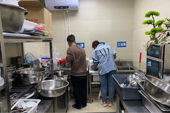 艺术与设计公司在陕北文化艺术创作基地的所有员工均可参加该课程实践活动,在课程有序进行的前提下,员工们采取自愿报名的形式,利用早、中、晚分别一个小时的间隙时间,在写生基地的宿舍卫生管理、餐厅帮厨打饭、餐厅清洁打扫、餐厅餐盘清洗等劳动实践中奉献自己的力量,为120余名同学的集体生活秩序提供服务和保障。