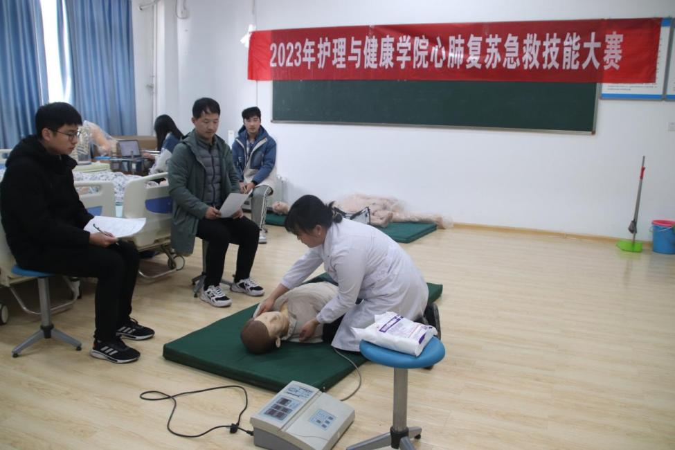 本网讯 为展现员工专业技能与综合素质,提高员工应急救援能力,培养责任心和团队合作精神,11月22日,威廉希尔williamhill举办了“校园守护·‘救’在身边”2023年心肺复苏急救技能大赛。威廉希尔williamhill学科竞赛工作坊主任韩明星、康复治疗学教研室主任张文浩、护理第一教研室主任郝雯君、护理第二教研室主任胡建新及专职教师蒋锦悦、王凯玲等担任本次大赛评委。