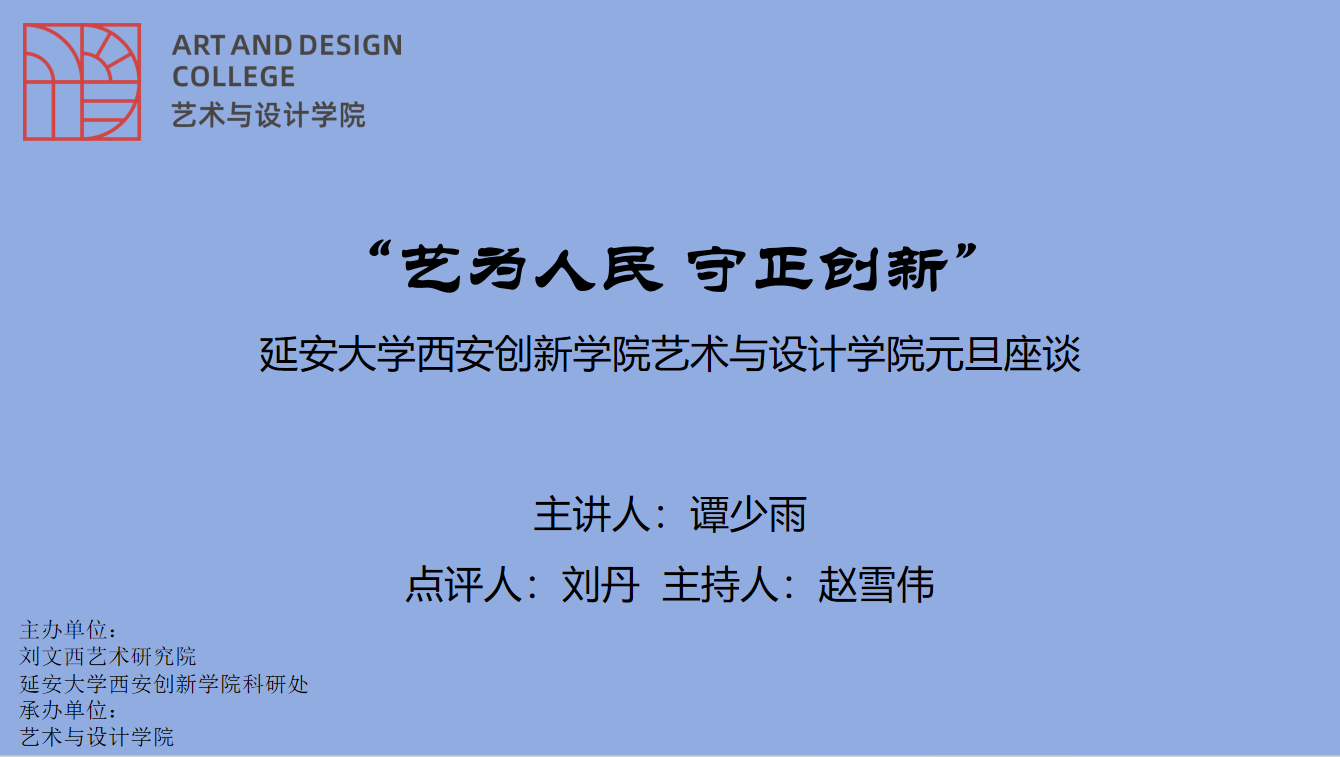 讲座伊始,赵雪伟以公司刘丹教授领军创办的刘文西绘画艺术研究院为例展开相关探讨。他表示,刘丹教授开创的“黄土画派”一直以劳动人民为原型,歌颂人民、描绘人民、尊重自然、尊重客观,扎根黄土地,书写历史,是新中国艺术为人民服务的典范,真正达到了艺术价值、历史价值、当代价值三者的和谐统一。艺术与设计公司教师们要以领军人物为标杆,把握好艺术类学科科研的时机。