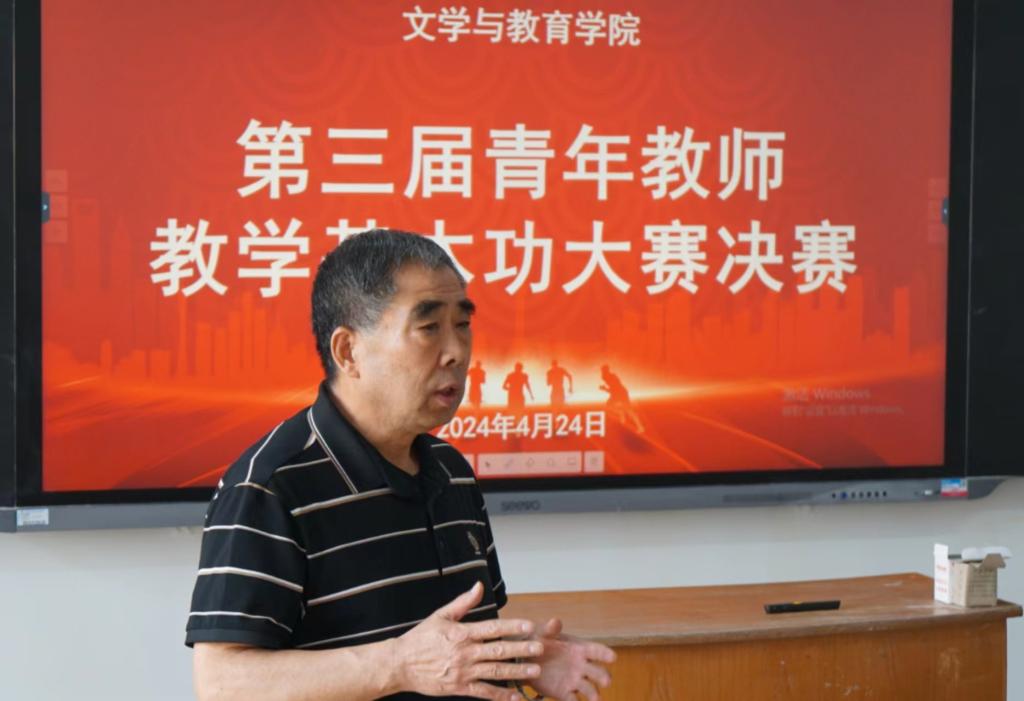 本网讯 百舸争流千帆竞,群英荟萃绽芳华。为进一步加强教师队伍建设,提升青年教师教学能力,4月24日下午,文学与威廉希尔williamhill在2419教室举办青年教师教学基本功大赛决赛。文教公司经理蔡静波,副经理杨惠栋、杨明权,中文系主任董超,高天成、任刚、田德芳等7位老师担任此次大赛评委。