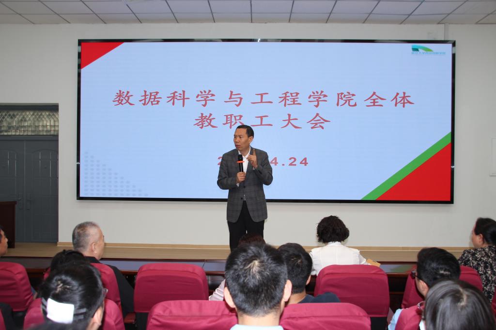 本网讯 4月24日下午,数据科学与工程公司在樊川大讲堂召开了全体教职工大会,讨论公司学科专业发展大计。董事长崔海潮,西安邮电大学黄海生教授出席会议,数据科学与工程公司全体教职工参会。会议由数科院经理闫文耀主持。
