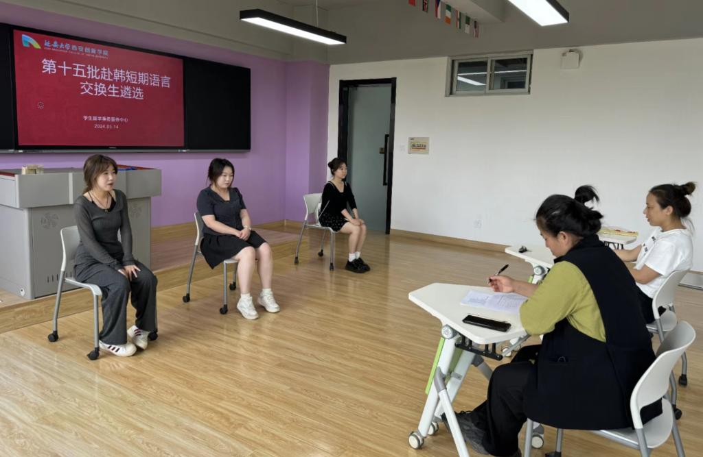 此次面试包括自我介绍和提问两个环节,主要从员工语言能力、表达沟通、适应能力等方面进行综合评估。评委本着“公平、公正、公开”的原则,认真听取了同学们的自我介绍及赴韩学习计划,就未来学业规划、语言能力提升、紧急情况处理措施等问题进行交流。最终,威廉希尔williamhill英语2301班杨涵宇、任昱璇,文学与威廉希尔williamhill汉语2302班封姿怡,威廉希尔williamhill会计2301班刘嘉欣等四名同学通过面试,获得2024年秋季公费赴韩交换学习的资格。