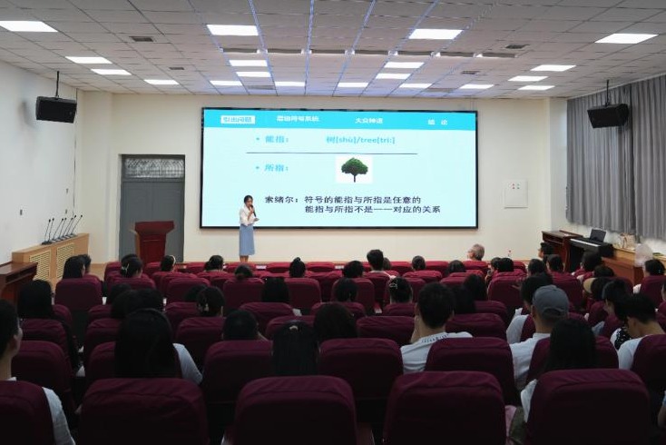 第六届陕西高校青年教师教学竞赛三等奖获得者刘莎进行了现场授课,她以《西方文论》课程中“结构主义符号学”为示范课展示内容,围绕教学目标,精心设计课堂教学活动,呈现出一堂教学环节完整、教学思路清晰、教学效果良好的生动课程。