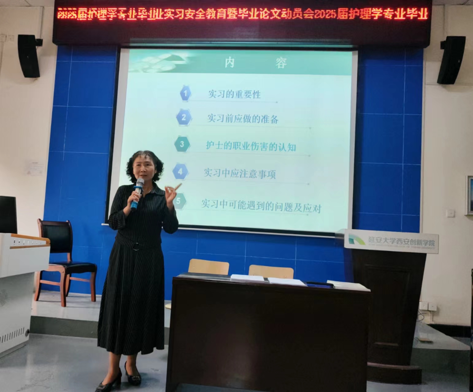 何敏作总结发言,她鼓励同学们以饱满的热情投入到毕业实习和论文撰写工作中,严格遵守公司和医院的管理制度,加强自我管理,确保人身和财产安全。她希望同学们能够顺利完成实习、毕业论文和护考等学业任务,为未来的职业生涯打下坚实的基础。
