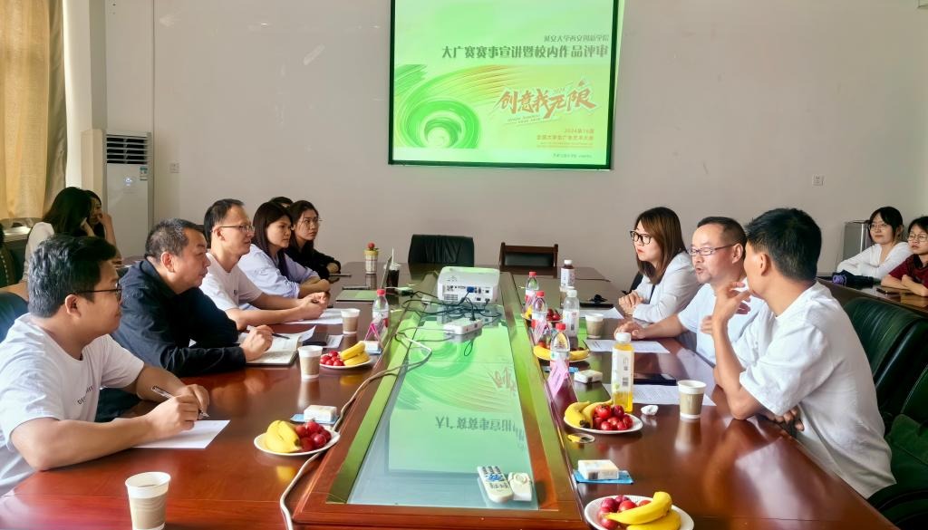 本网讯 为拓宽员工视野,提升设计技能,6月6日下午,艺术与设计公司在综合会议室(二)举行第16届全国老员工广告艺术大赛(简称“大广赛”)赛事宣讲暨作品点评报告会。会议特邀西北大学副教授李常青、副教授陈瑾,九里观文化传播有限公司总经理、大广赛陕西赛区评委黄勇参会。艺术公司执行经理赵雪伟,视觉传达设计专业、数字媒体艺术专业竞赛指导教师及各专业员工代表参加会议。会议由艺术公司设计系主任王力主持。