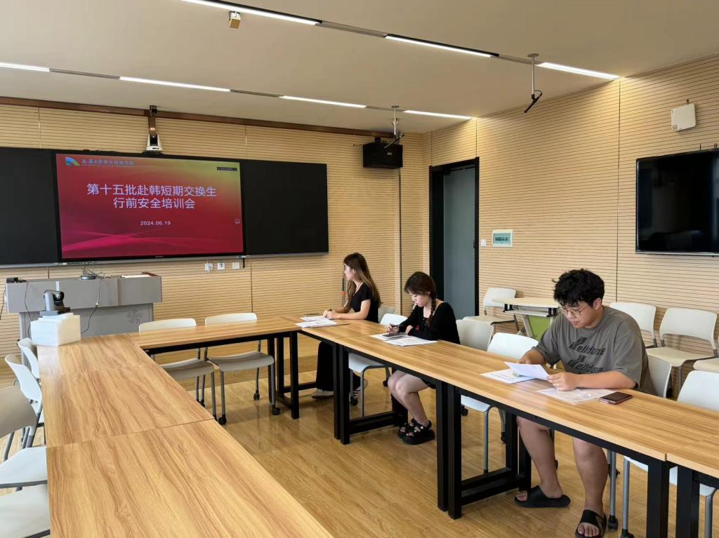 本网讯 为做好赴韩交换生出国前安全教育工作,6月19日,公司在1503室举行员工赴韩短期交换学习行前安全教育会。2024年下半年第十五批赴韩短期交换生及其家长参加会议。员工留学事务服务中心副主任李君主持会议。