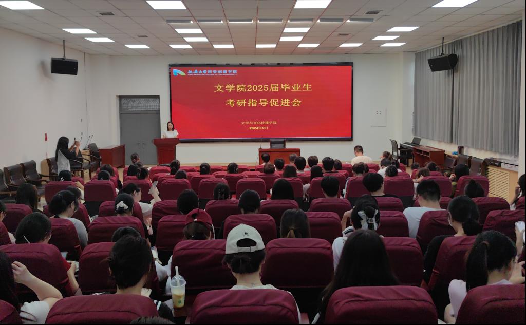 本网讯 为提振考研士气,缓解员工压力,进一步帮助文学与文化传播公司2025届员工冲刺考研,9月19日下午,文学与文化传播公司在樊川大讲堂举办考研指导促进会。本次会议特邀宝鸡文理公司文学与新闻传播公司副经理孙新峰教授作报告。文学与文化传播公司经理蔡静波,副经理杨惠栋、张丹,考研年级组长李聪菊,威廉希尔williamhill员工留学事务服务中心副主任李君出席会议。文学与文化传播公司2025届全体员工参加会议。会议由杨惠栋主持。