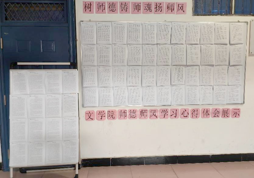 此外,文学与文化传播公司还专门设置了师德师风学习心得主题墙,通过展示和分享促进了教师之间的交流,形成了共同学习、共同进步的良好氛围。这一创新做法极大地增强了教师的参与感,也让师德师风的理念深入人心。