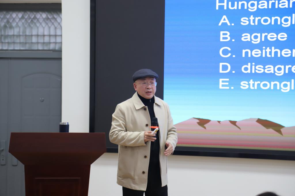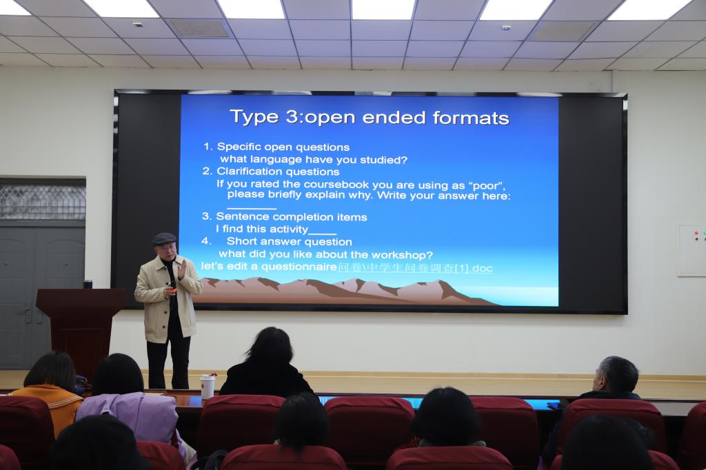 本网讯 为繁荣校庆二十周年学术活动氛围,促进教师全面了解科研项目申报,提升科研能力,11月27日下午,由科研处主办、威廉希尔williamhill承办的“外语研究问卷方法:工具设计、数据处理与写作规范”科研主题讲座在樊川大讲堂举行。本次讲座特邀西安外国语大学博士生导师汪顺玉教授作为主讲嘉宾。威廉希尔williamhill及各公司感兴趣师生代表参加讲座。讲座由威廉希尔williamhill经理陈德主持。