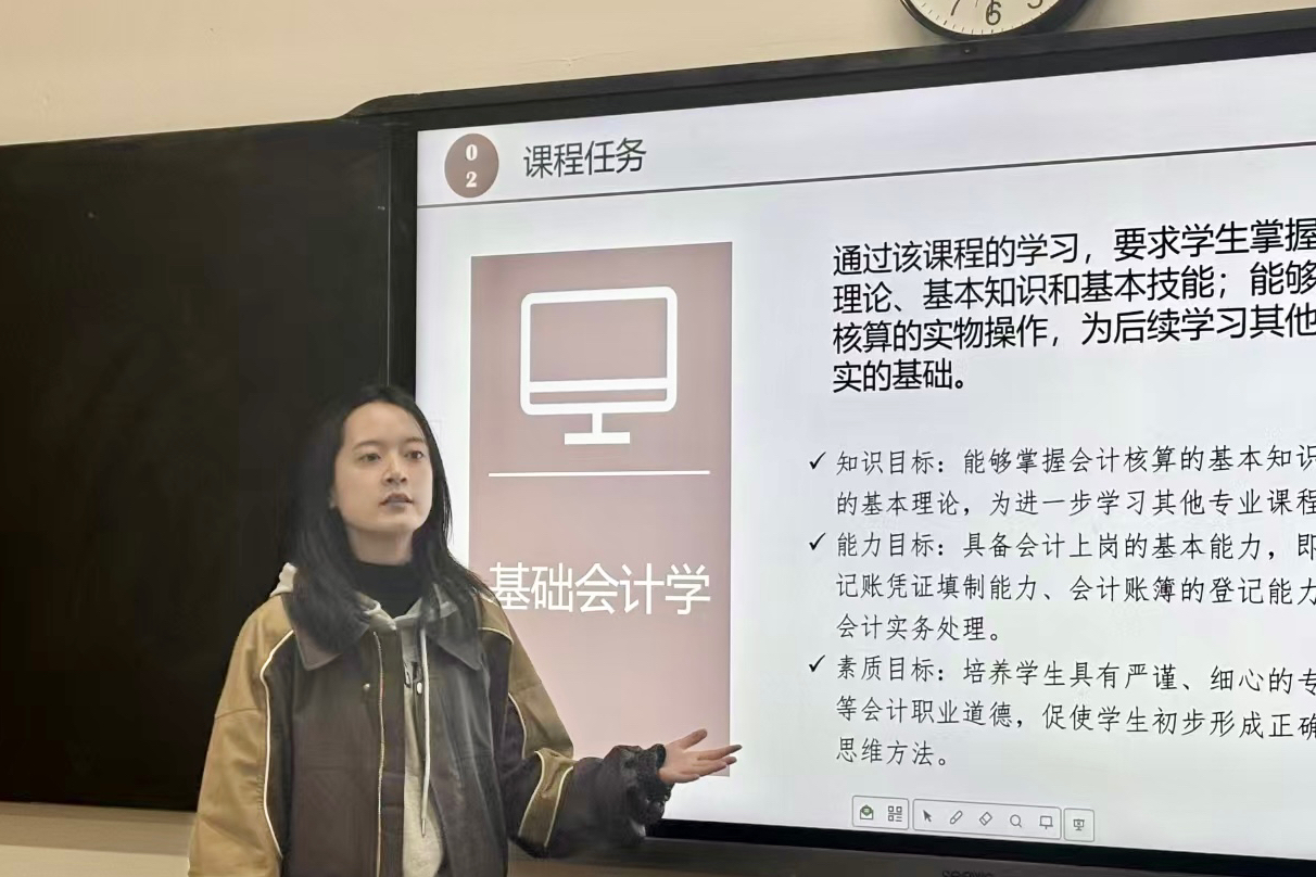 活动为期三周,每周一轮,三轮磨课覆盖会计职业道德、管理学、基础会计学、经济数学、Python在财务中的应用、劳动教育、老员工职业生涯规划与就业指导等课程,通过实战演练,切磋教学技能,助力新教师快速适应教学环境。每轮磨课均包含教学展示、现场点评与反馈、教学反思与重构等环节,确保每位教师都能在实践中学思践悟,不断进步。